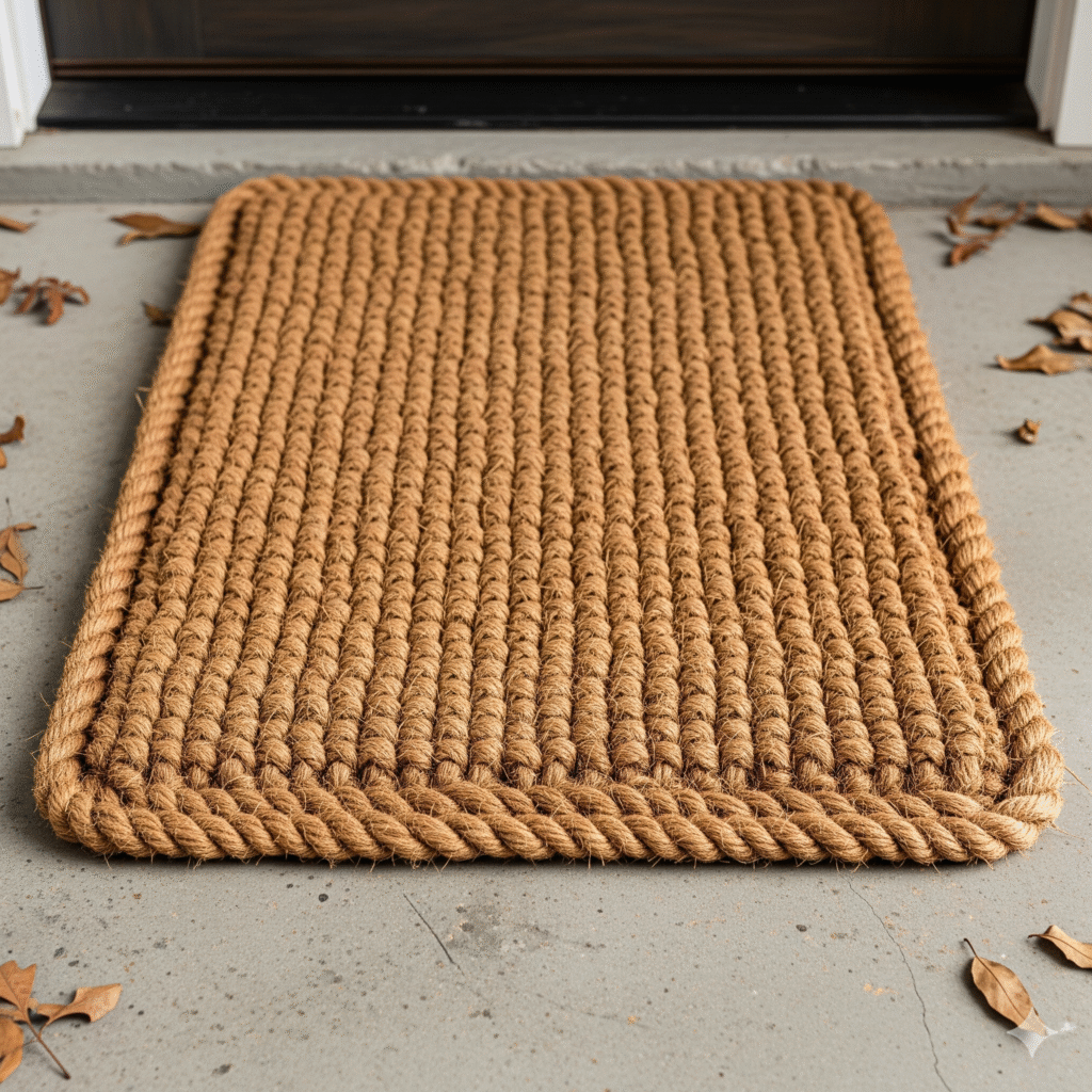 Handcrafted from natural coir ropes, this durable and eco-friendly doormat combines rustic charm with practical functionality. Its textured surface effectively scrapes dirt and mud, making it ideal for indoor and outdoor entrances.