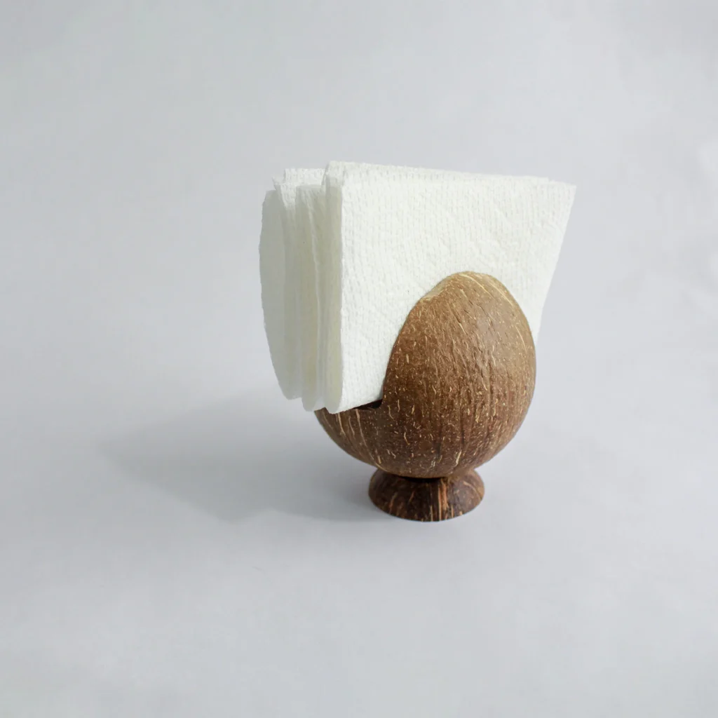 Eco-friendly tissue holder handcrafted from natural coconut shell – durable, unique, and perfect for adding a rustic charm to your dining table or living space.