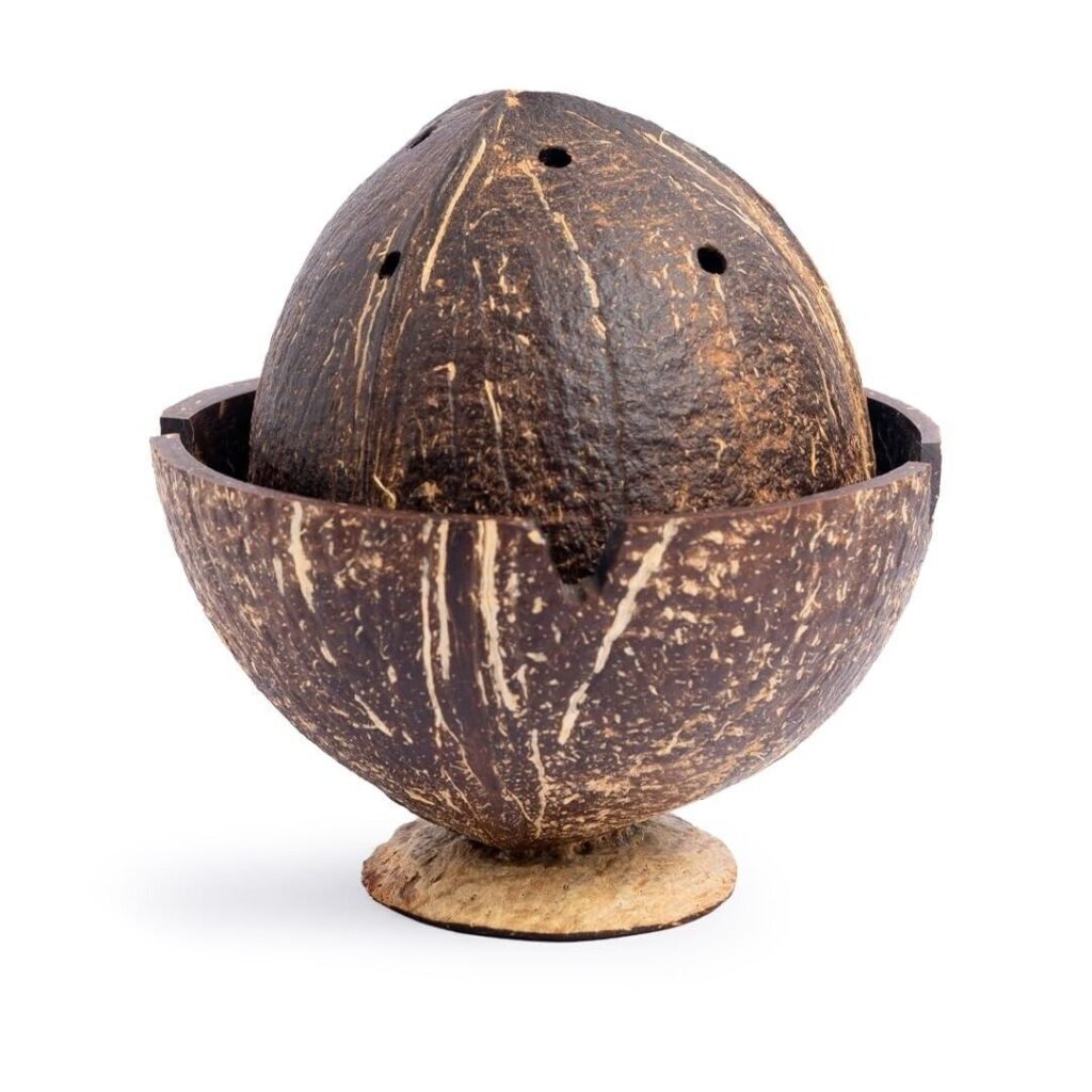 Handcrafted dhoop holder made from natural coconut shell – eco-friendly, durable, and perfect for creating a calming, aromatic ambiance during prayers or meditation.