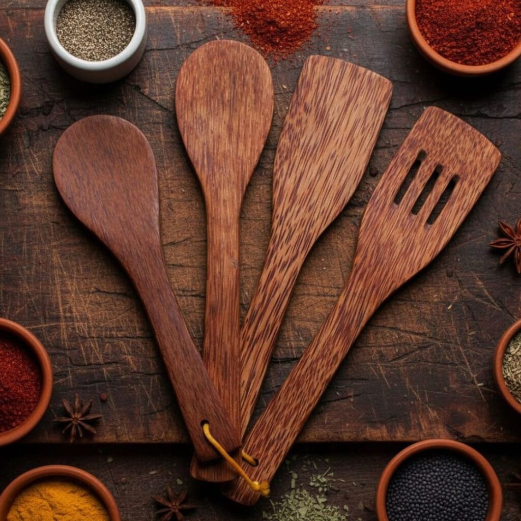 Durable spatulas handcrafted from coconut wood .eco-friendly, heat-resistant, and perfect for everyday cooking without scratching cookware.