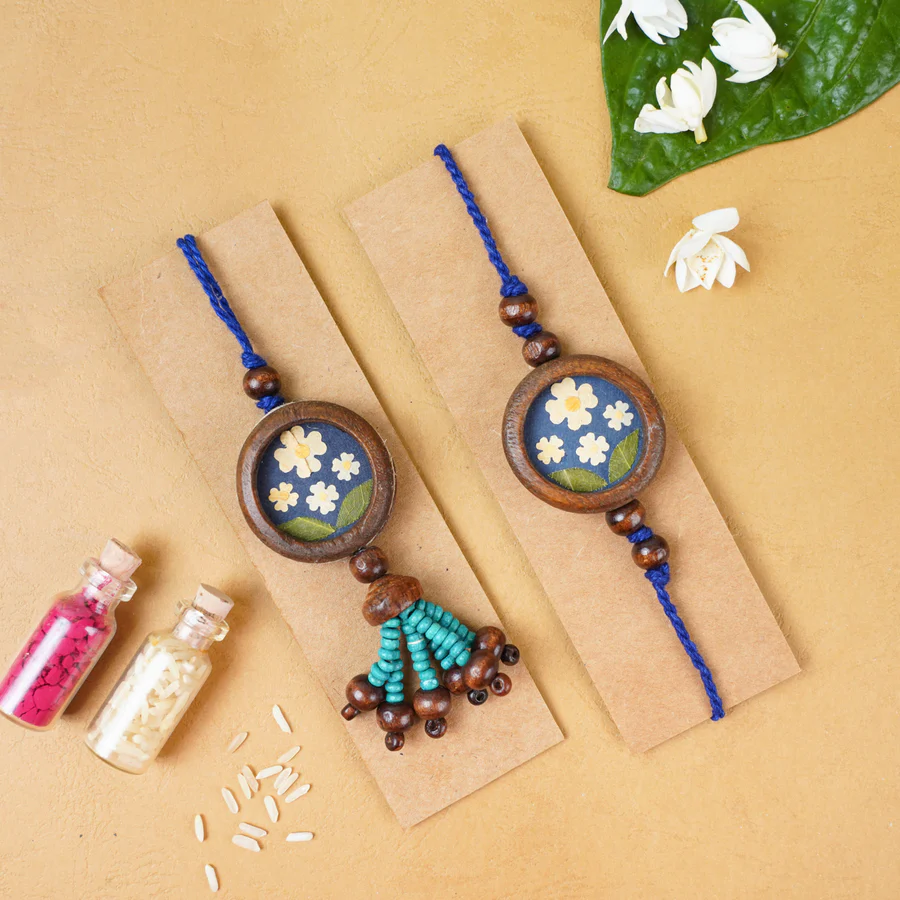 Eco-friendly rakhis handcrafted from natural coconut shell – unique, sustainable, and a beautiful way to celebrate the bond of love this Raksha Bandhan.