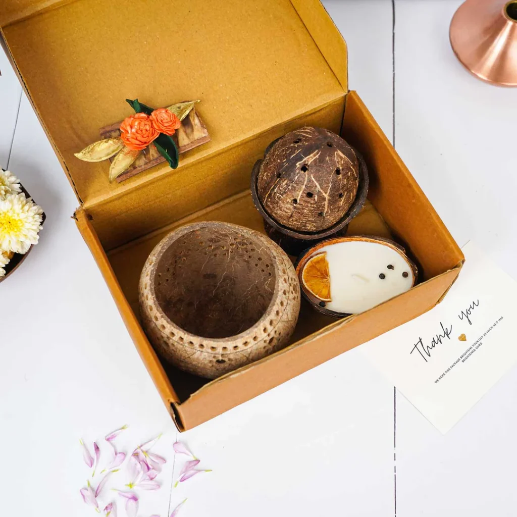 Unique birthday hampers crafted with eco-friendly coconut shell products – a perfect blend of sustainability, utility, and rustic charm for thoughtful gifting.