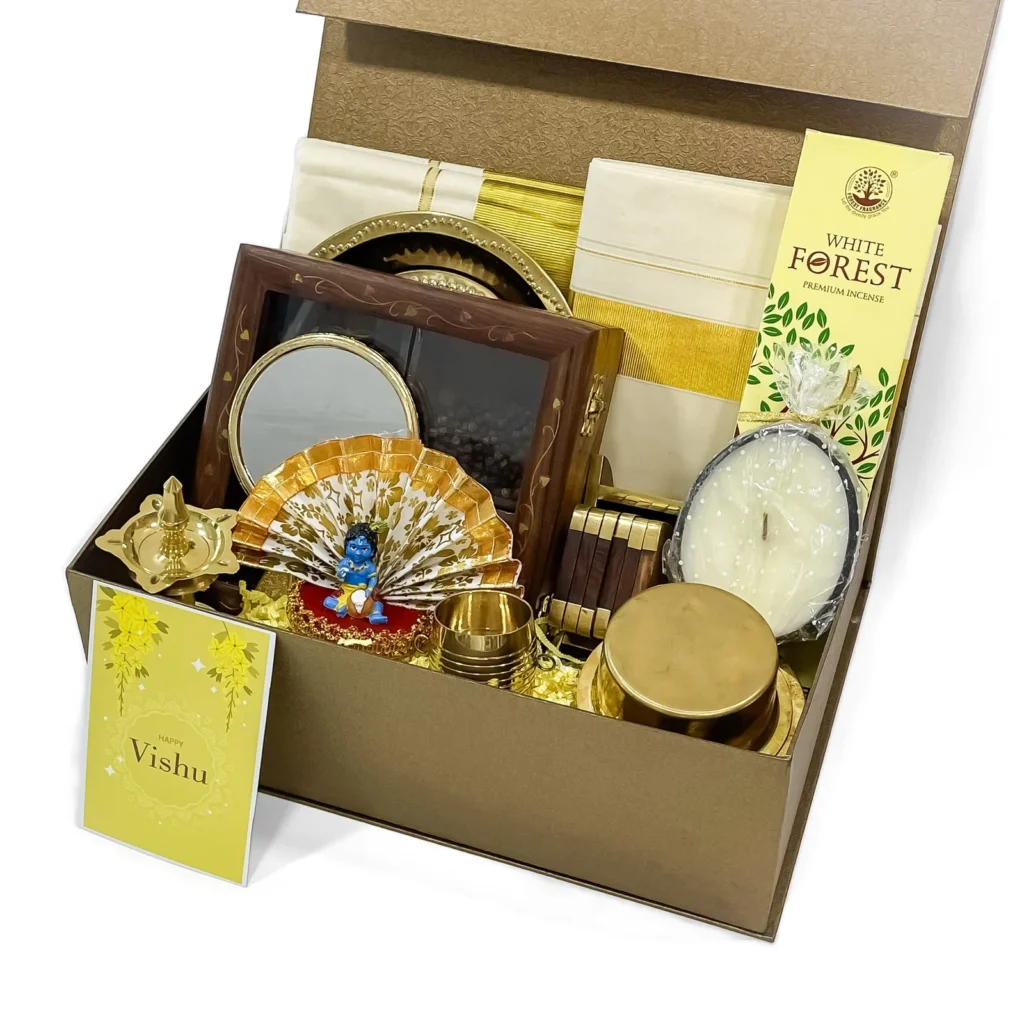 Eco-friendly Vishu hampers filled with handcrafted coconut shell products – sustainable, traditional, and perfect for festive gifting with a Kerala touch.