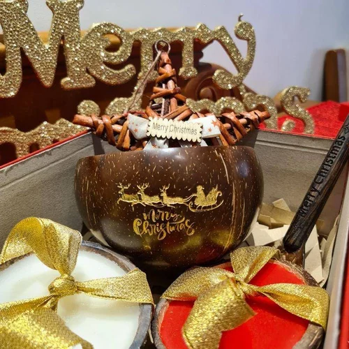 Festive bowls handcrafted from natural coconut shells – eco-friendly, durable, and perfect for serving snacks, sweets, or décor during the Christmas season.